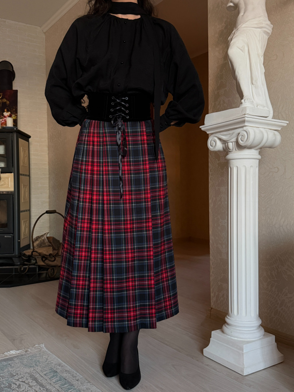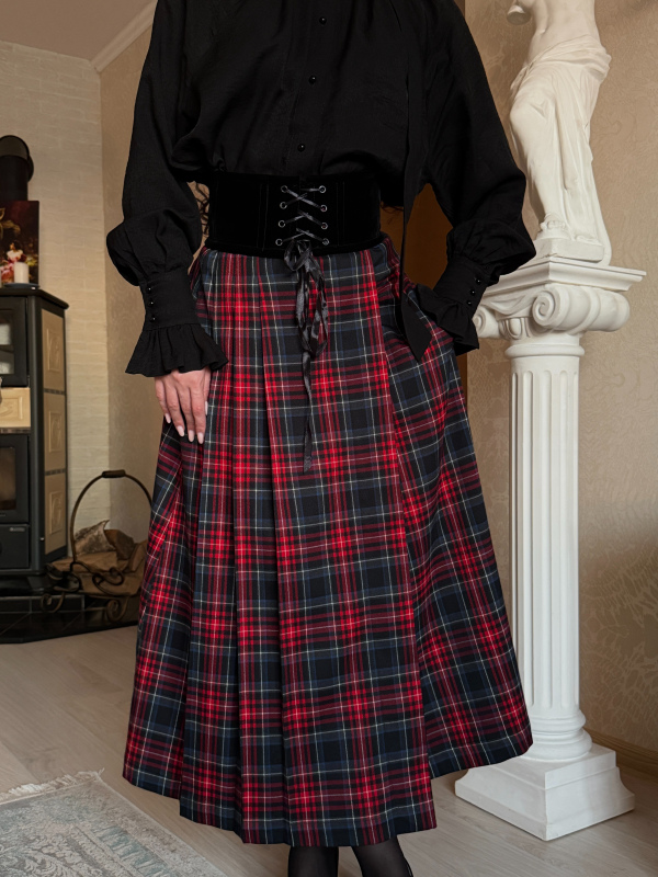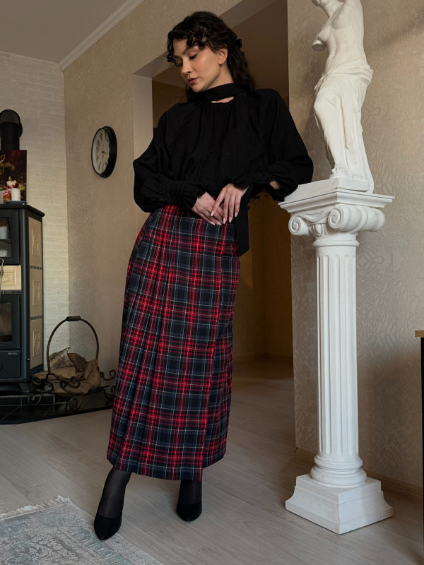 Юбка "Кензи" на запах в клетку тартан - дуэт шотландской классики и современной женственности. Запах фиксируется потайными кнопками, с помощью которых регулируется размер. Широкий пояс с шлёвками позволяет использовать любимые акцентные ремни и дополнительно фиксирует юбку на талии. Удобные карманы делают юбку не только стильной, но и практичной.