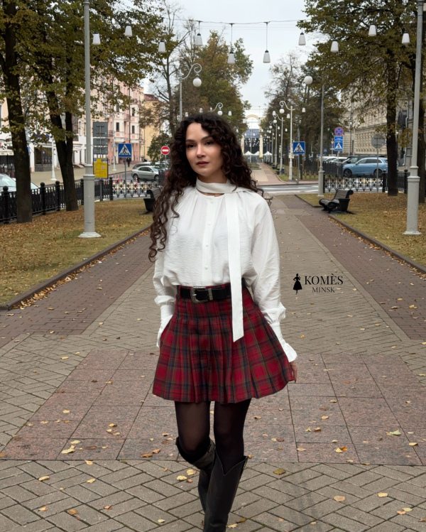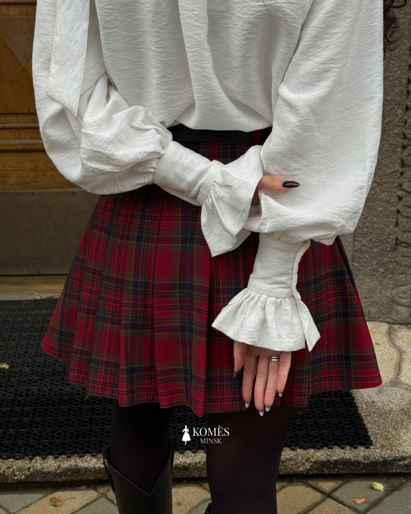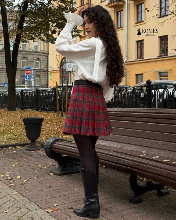 Длина мини придаёт образу дерзость и игривость, а красно-зелёная клетка делает её универсальной для сочетаний с белыми блузами, свитерами, жакетами и высокими сапогами. Шерсть в составе подарит тепло - идеальный выбор для осени, зимы и стильных городских прогулок.