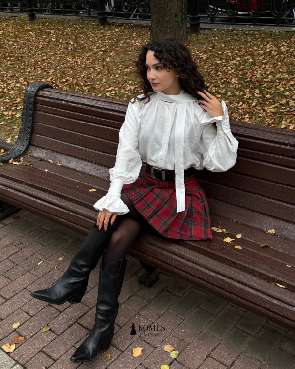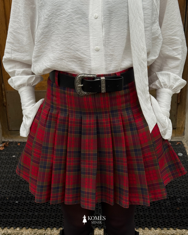 Плиссированная мини юбка "Скотти" в культовую шотландскую клетку тартан создана в духе преппи. Плиссировка начинается чуть ниже пояса, что позволяет визуально сформировать силуэт. Два скрытых кармана делают юбку не только красивой, но и удобной. Пояс юбки дополнен шлёвками для использования любимых акцентных ремней.
