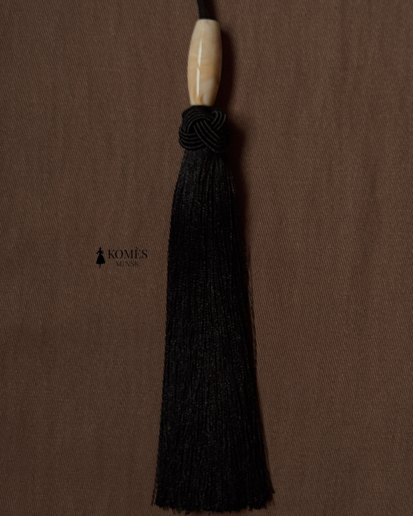 Длина шнурка от кончиков до кисточки - 440 мм, ширина - 2 мм. Кисточка - 150 мм, бусина - 32 мм