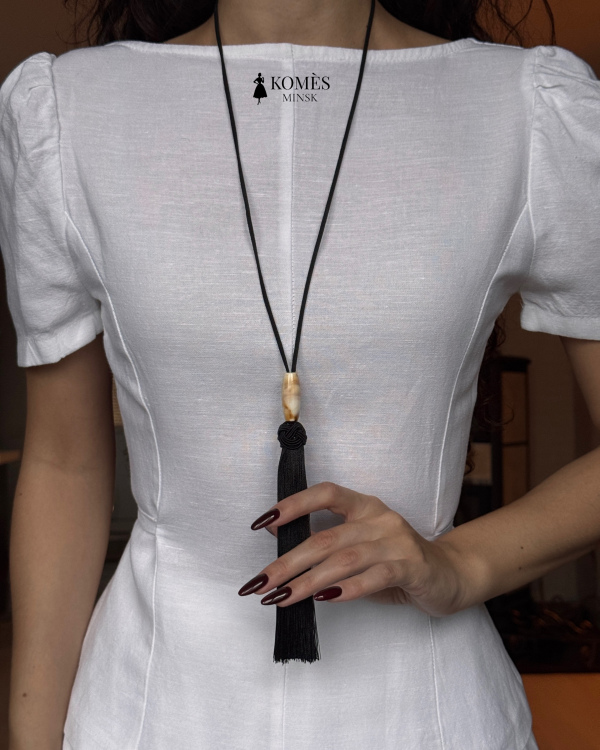 Подвеска с кисточкой на замшевом шнурке «Тассел» - элегантный минималистичный аксессуар, который подойдёт под любой стиль. Мягкий замшевый шнурок, кисточка из гладких шелковистых нитей и овальная бусина создают гармонию природных текстур и утончённого стиля. Украшение легко вписывается в повседневные и вечерние образы, добавляя нарядам глубину и акцент. Можно носить как самостоятельный аксессуар поверх блузы, платья, водолазки или сочетать с другими подвесками.